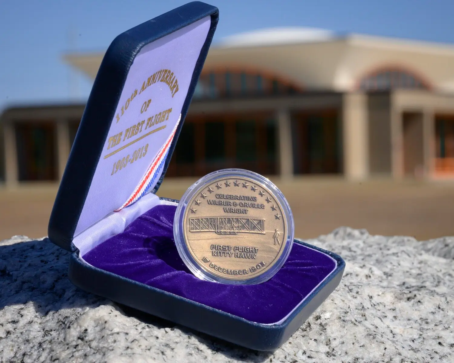 This is a Limited Edition numbered Medallion Coin offered exclusively by the First Flight Society. The coin features the 1903 Wright Flyer on December 17, 1903 (obverse) and the First Flight Society Logo (reverse). It is offered in Merlin Gold/Brass, Bronze, Silver* and Gold*. All coins are encapsulated and packaged in a custom-designed presentation case. Discount price available for members. *Silver and Gold coins no longer available.