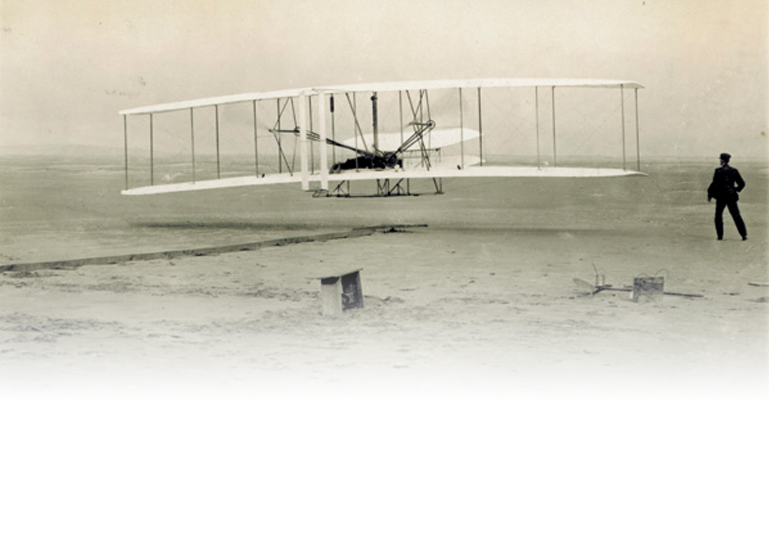 18″ x 20″ Black & White poster of the First Flight by Orville Wright, taken by John Daniels on December 17, 1903.
