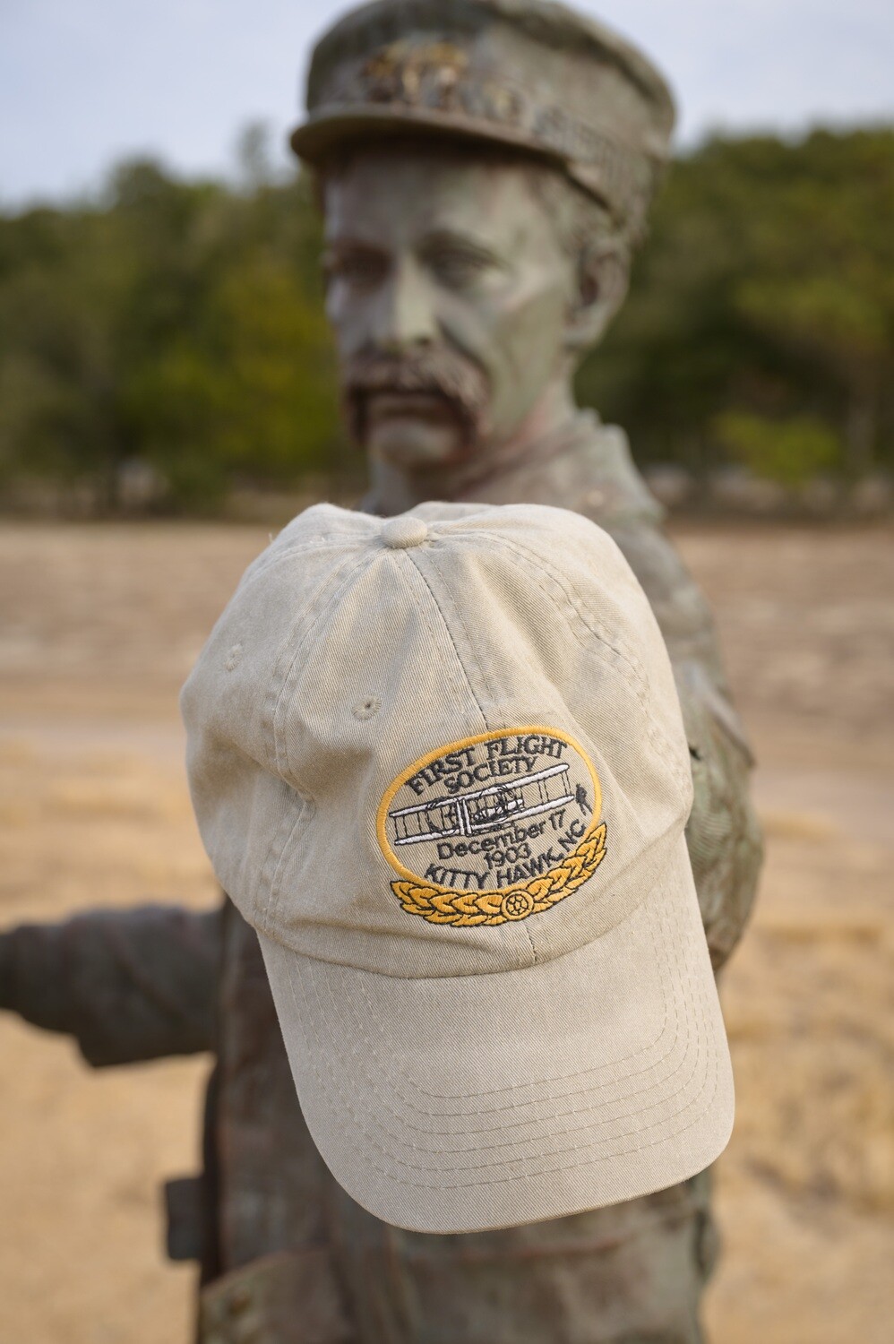Made from pigment-dyed, washed cotton for a soft, worn-in feel from day one. This khaki baseball cap features a low-profile crown, curved brim, and an adjustable strap for a comfortable, secure fit. Subtle branding on the front reads “First Flight Society” for a clean, classic look that pairs easily with casual and outdoor outfits.